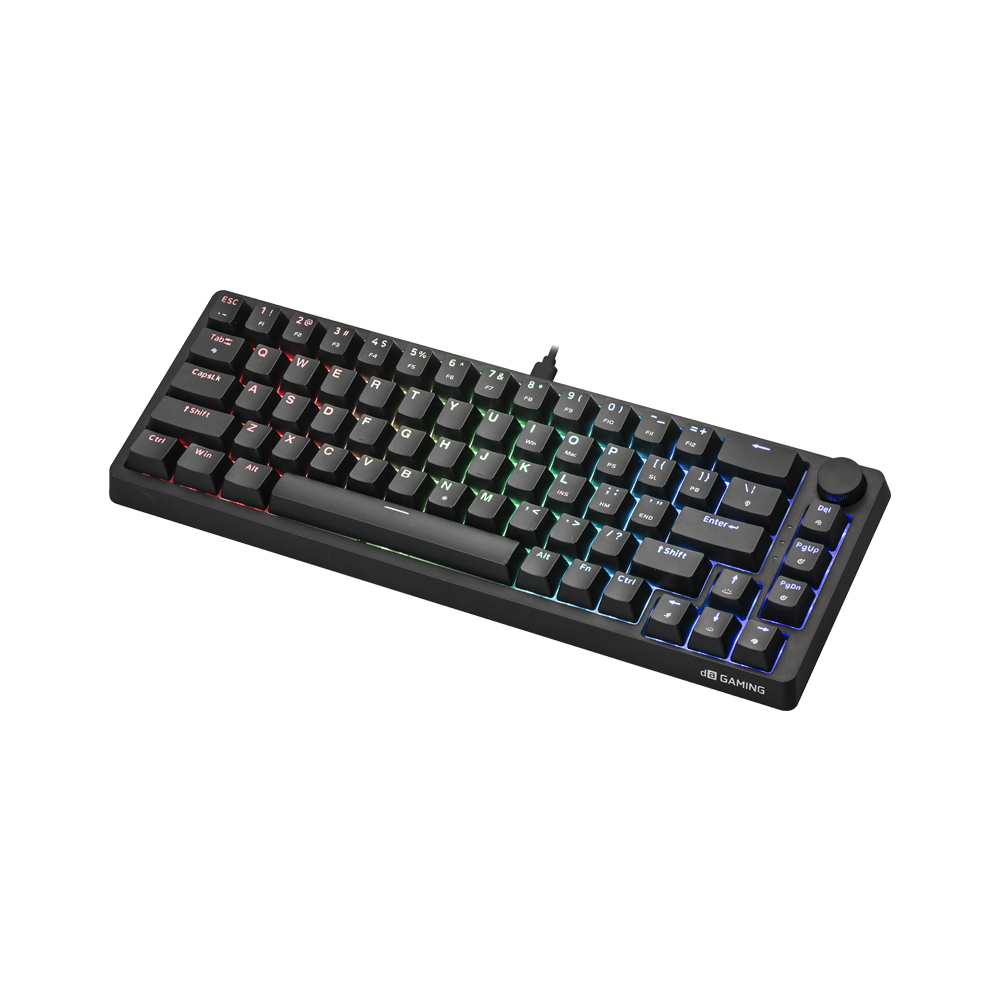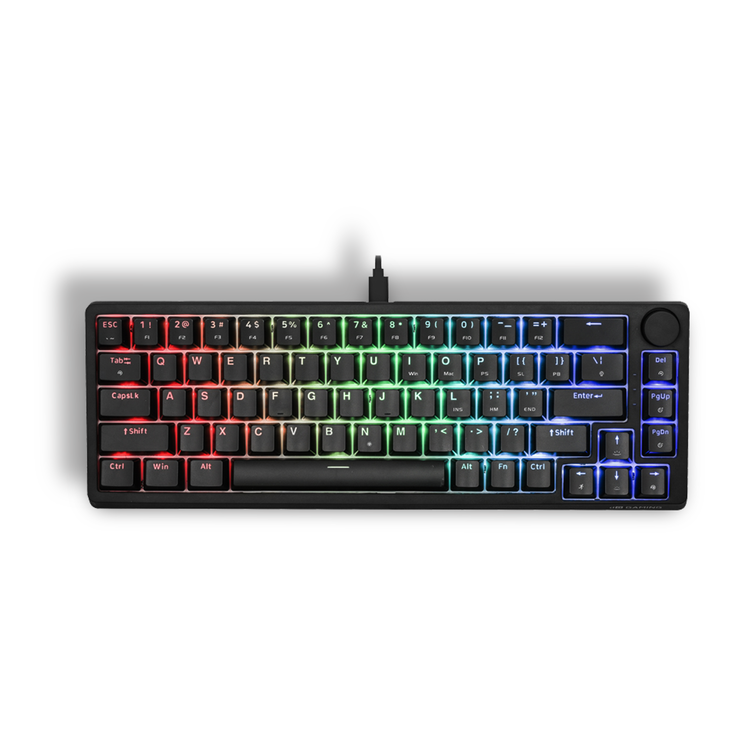 A 65% evolution-layout mechanical keyboard with volume knob, RGB lighting, detachable Type-C cable, double-injection keycaps, and Outemu switches for durable, comfortable gaming and everyday typing at home or office use.