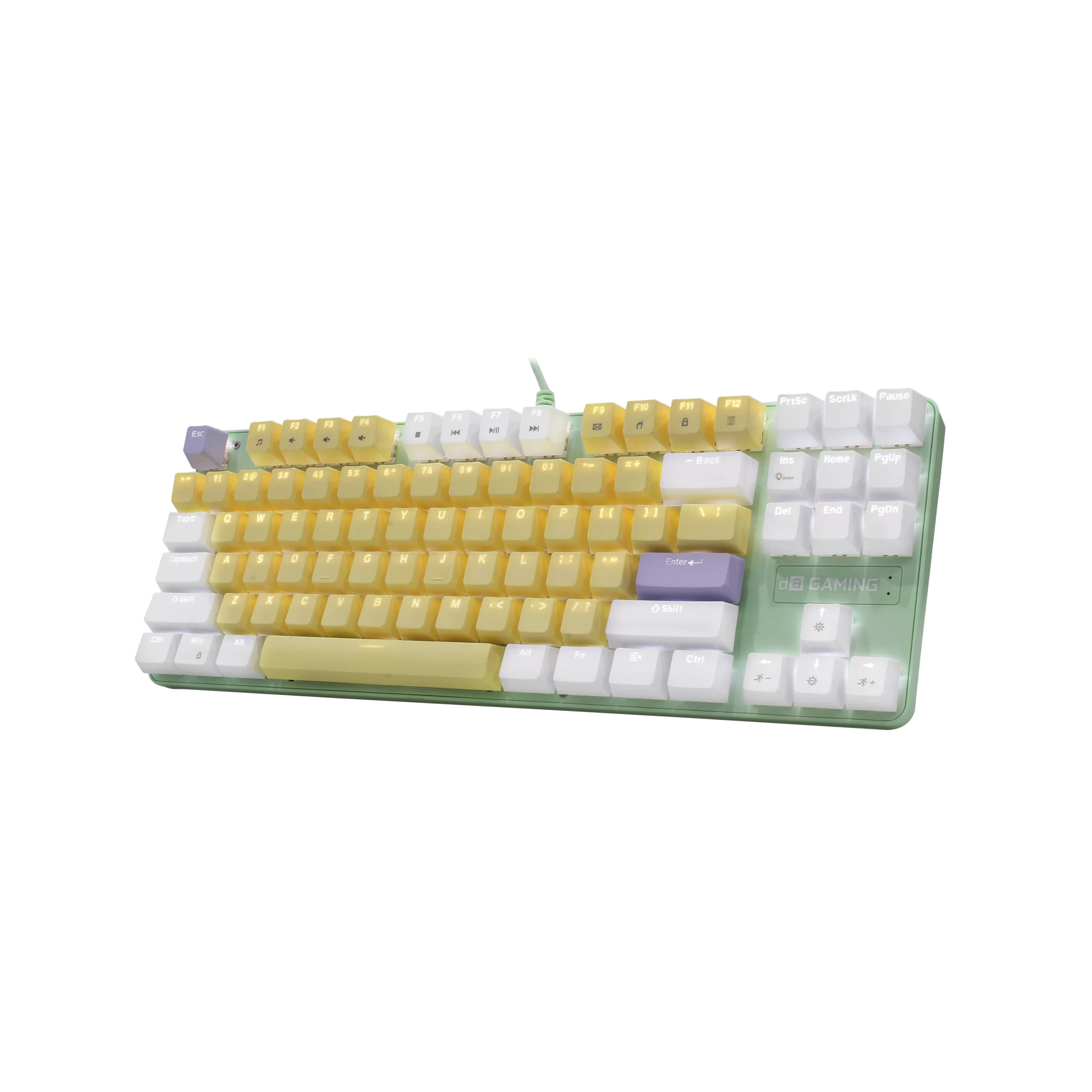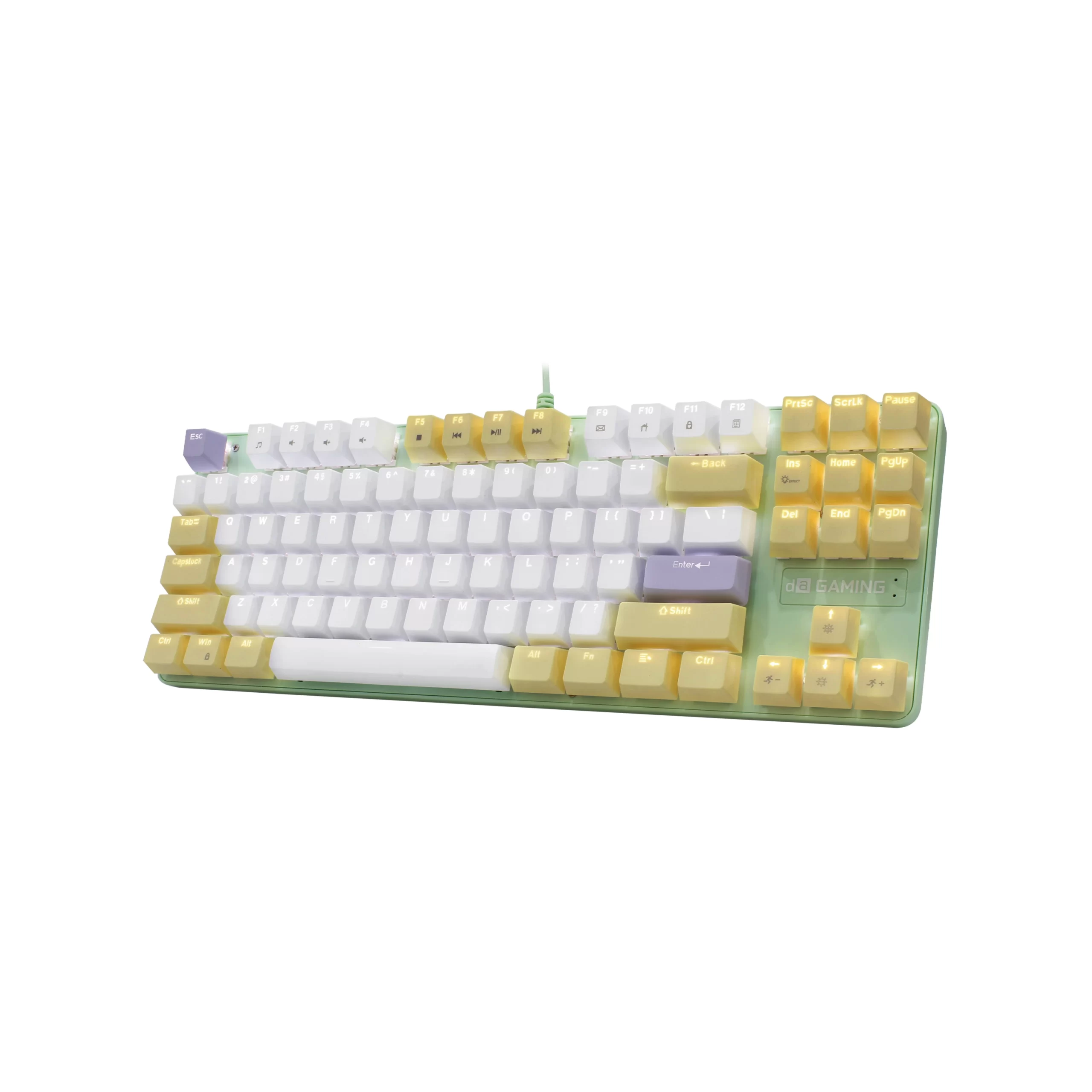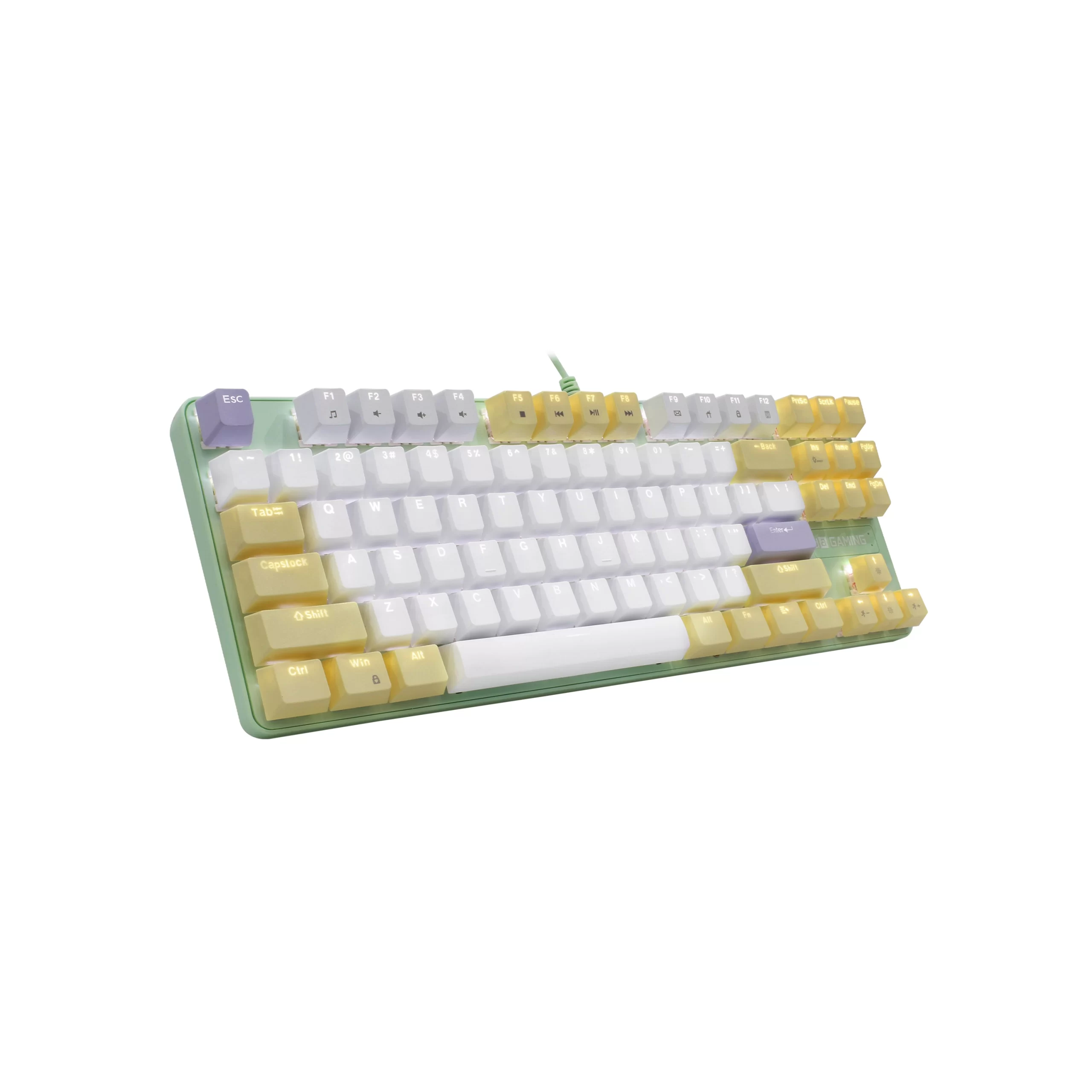Meca Fighter S Melon Series is a compact 80% keyboard with durable Outemu switches, 17-mode White Ice LED lighting, and tri-color keycaps for an elegant, gamer-ready look.