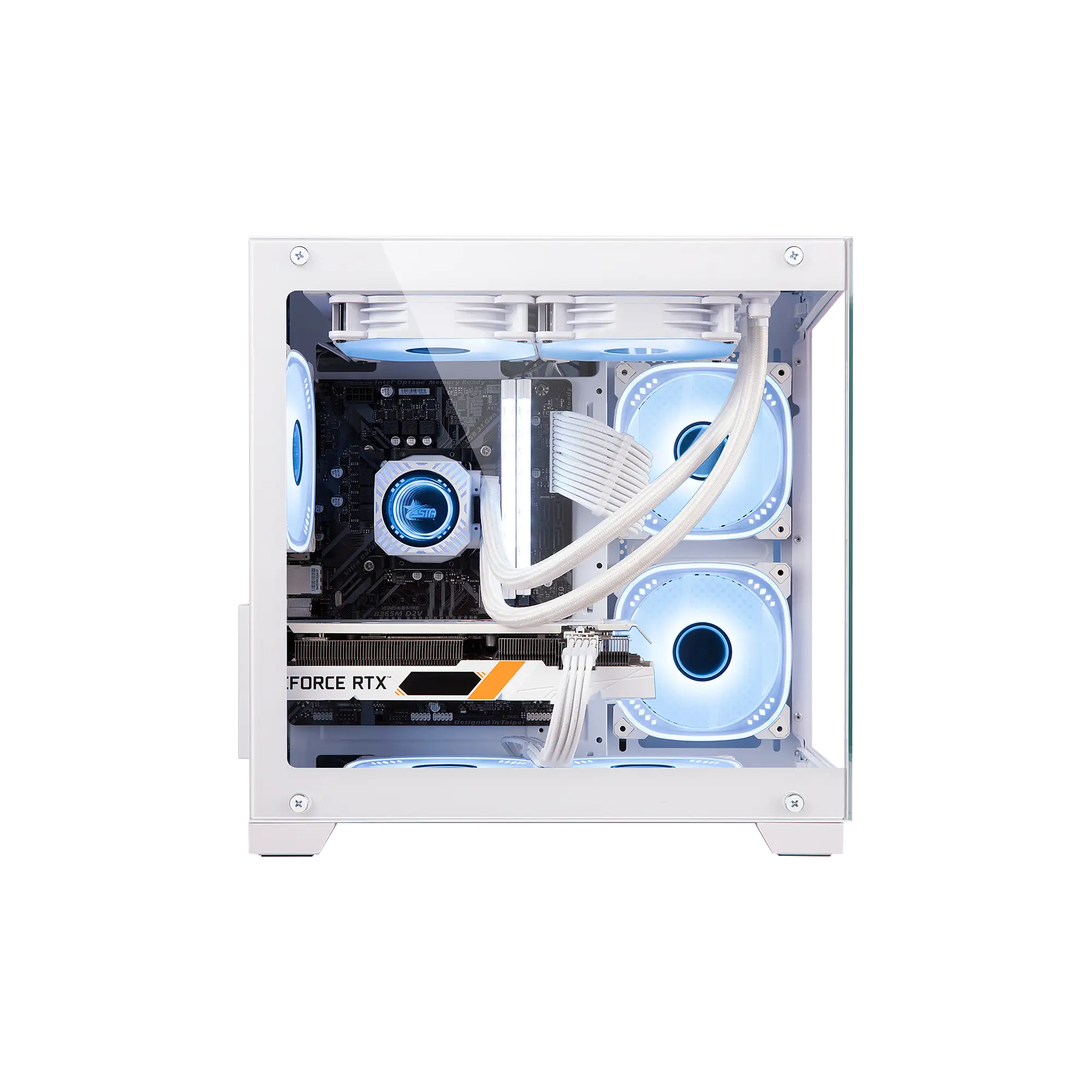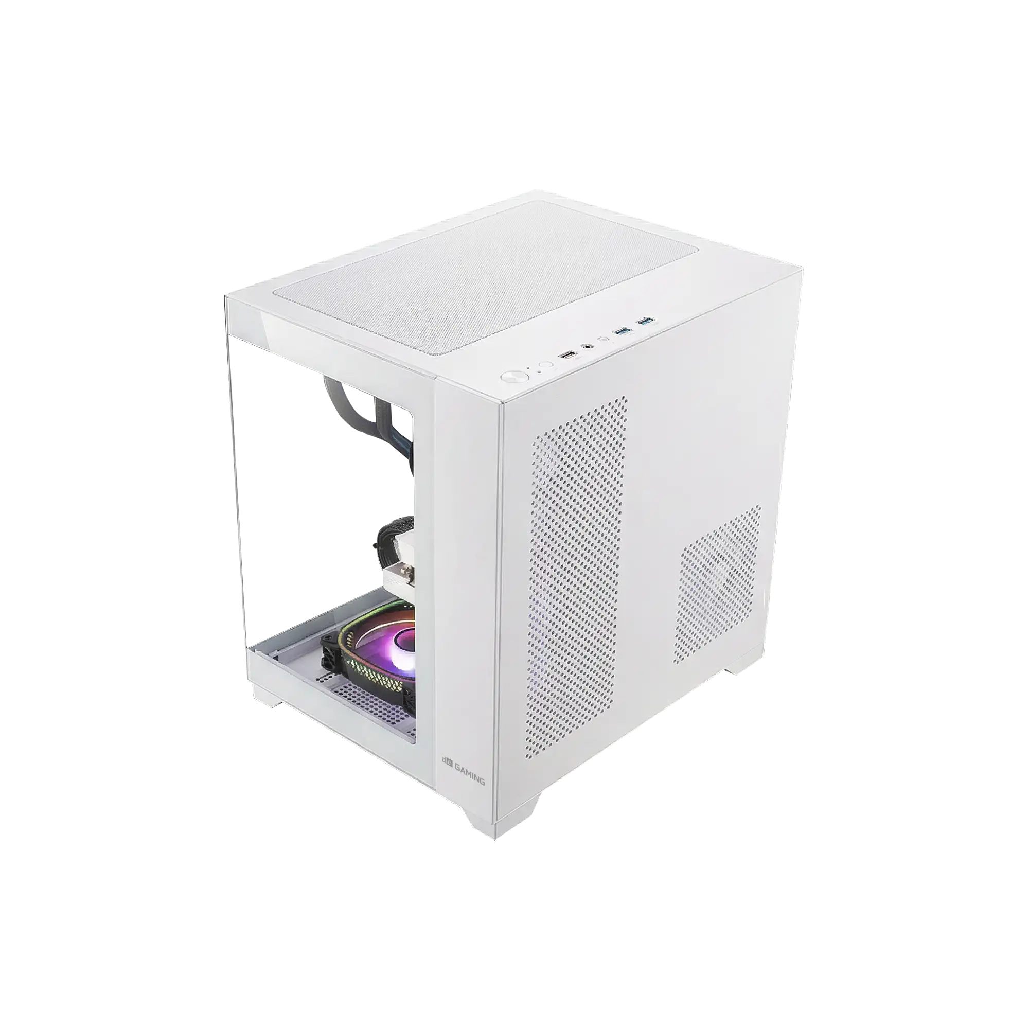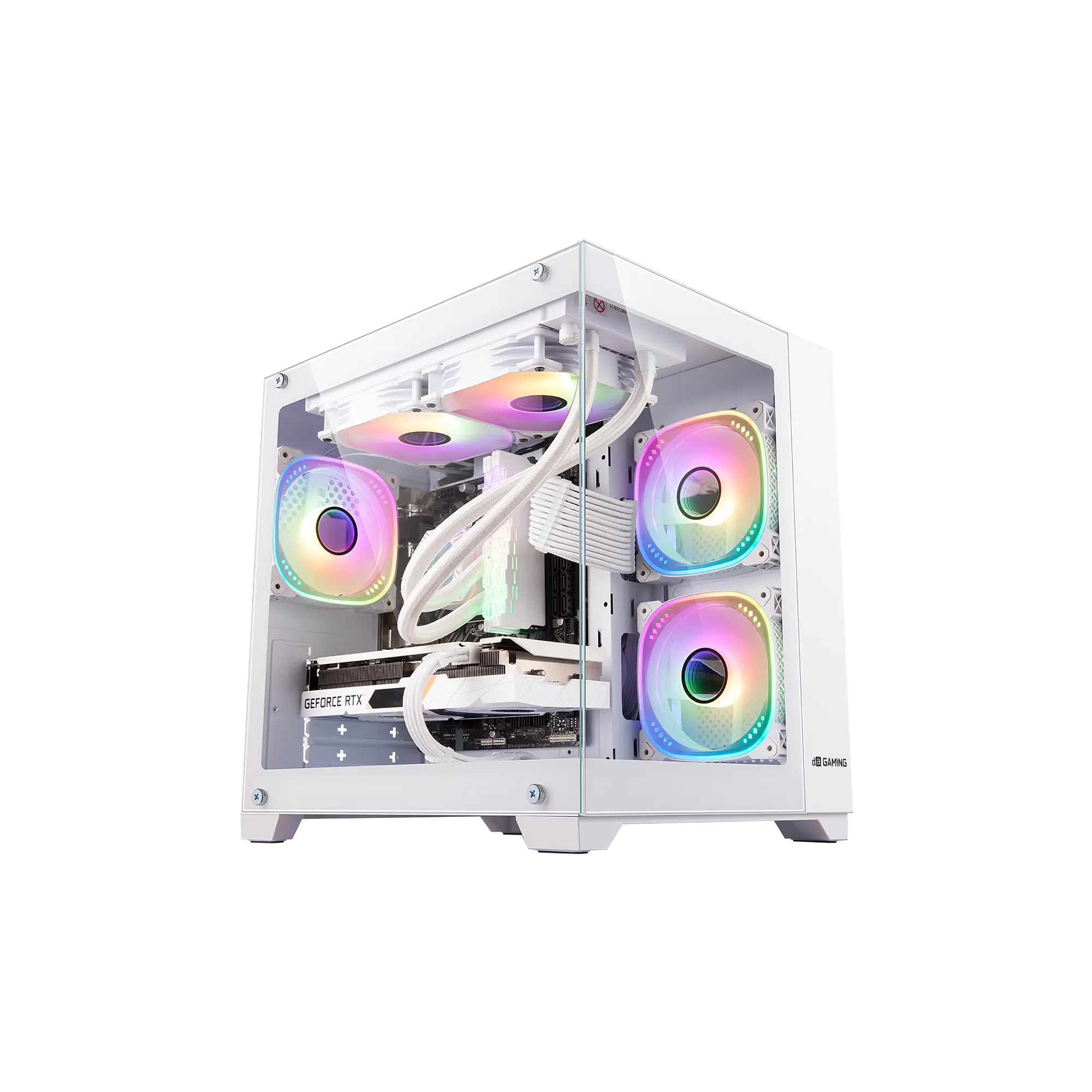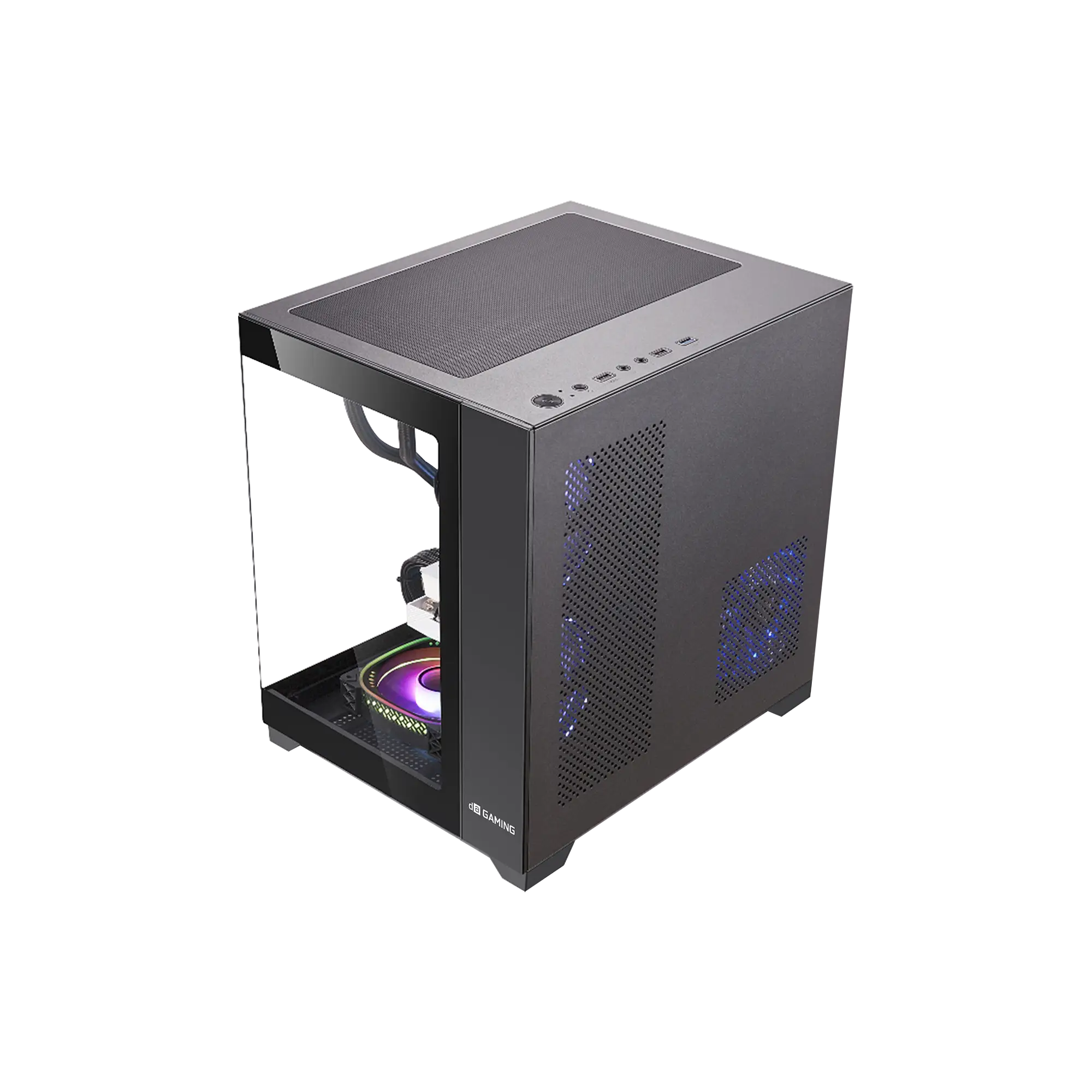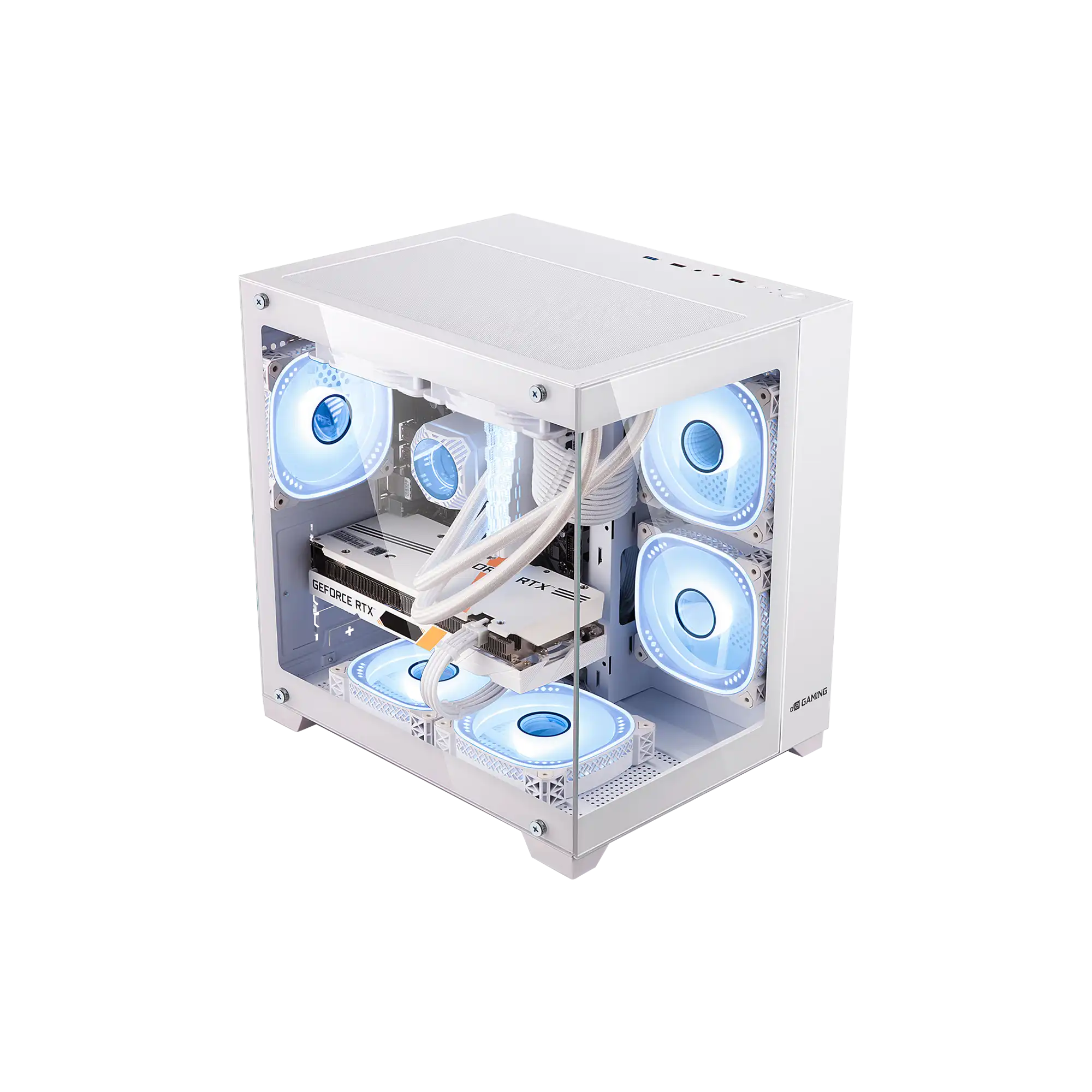 Compact mid-tower case with dual tempered-glass panels for a premium showcase. Supports long GPUs up to 330mm and tall coolers 185mm. Versatile fan mounts, USB-C I/O, and clean cable management.