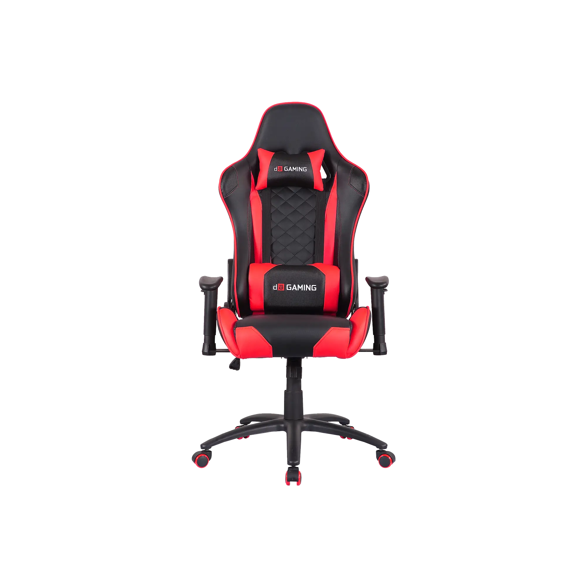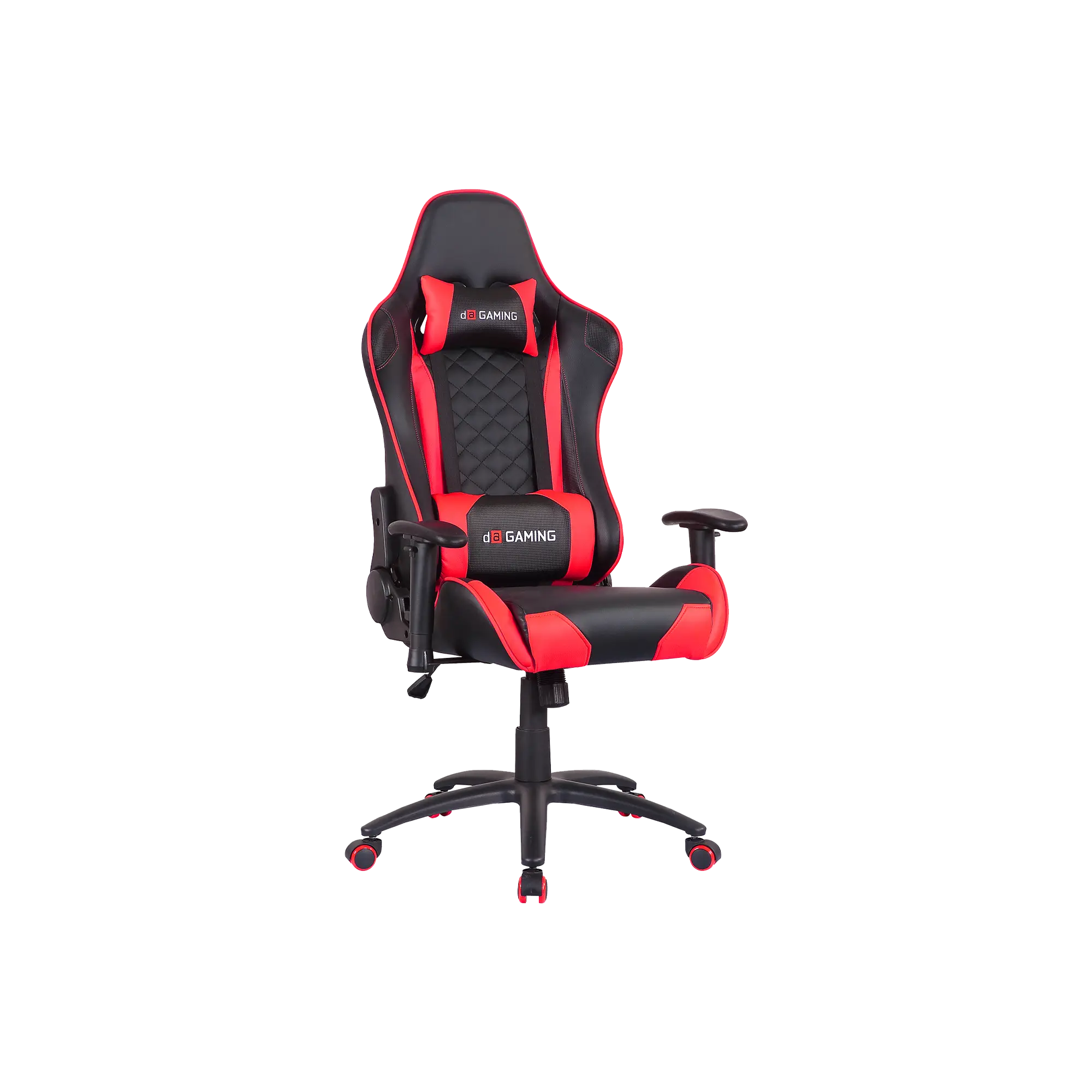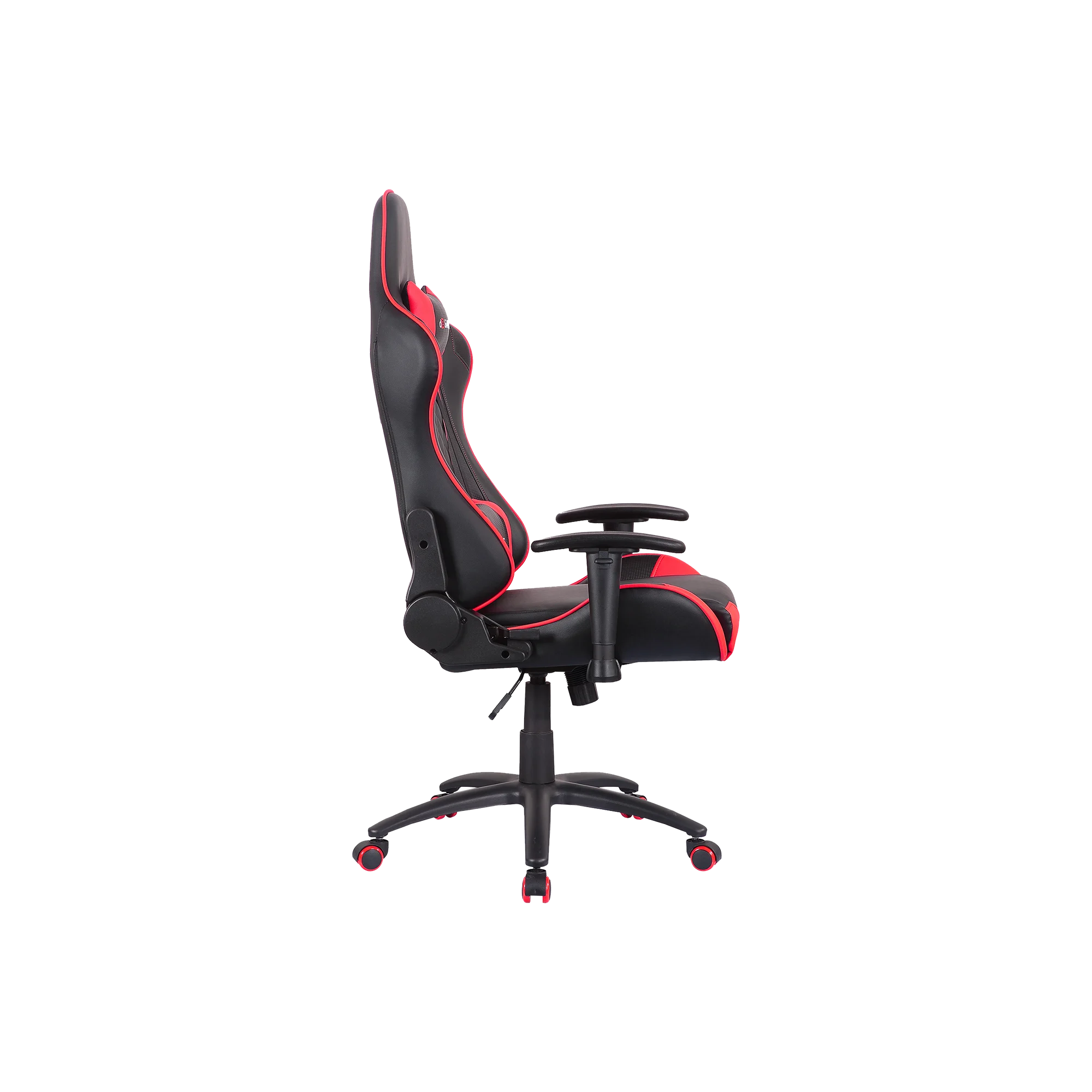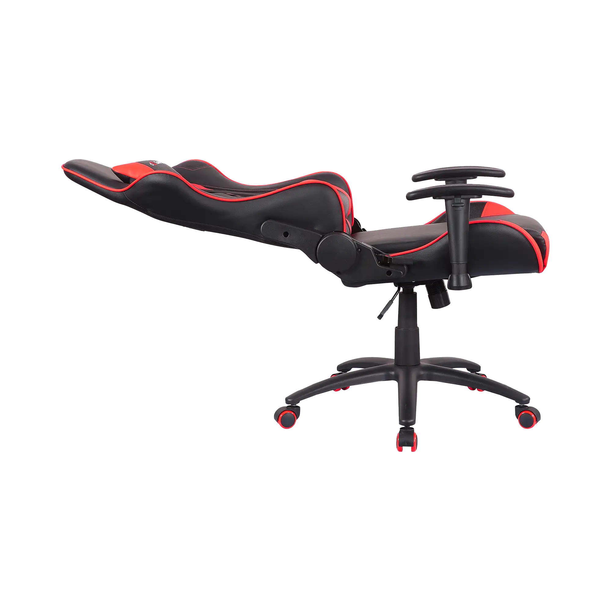 The Throne gaming chair offers high-density foam, metal frame, 2D armrests, 90–180° reclining backrest, Class 4 gas lift, and 150kg support, available in blue, red, or black for versatile setups.