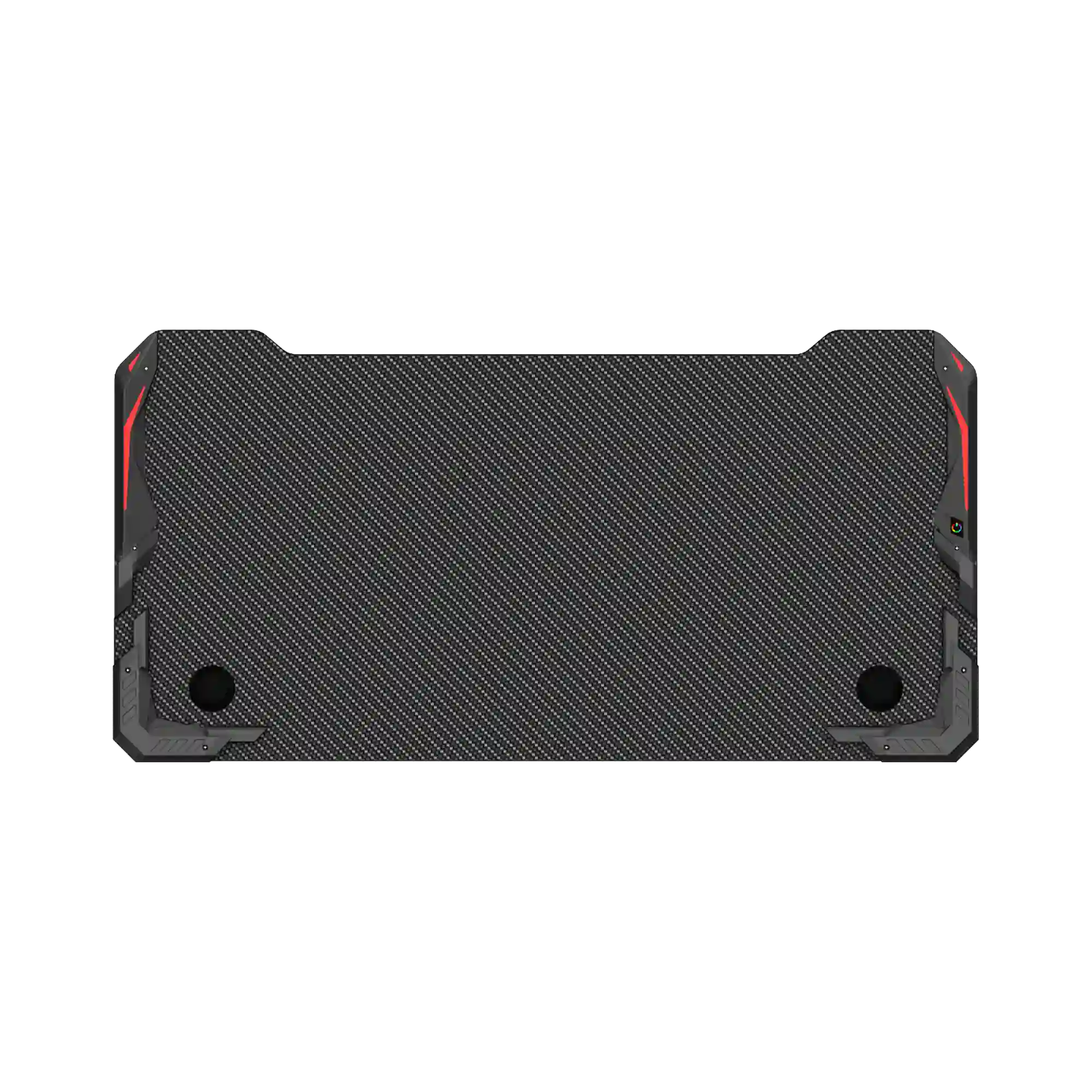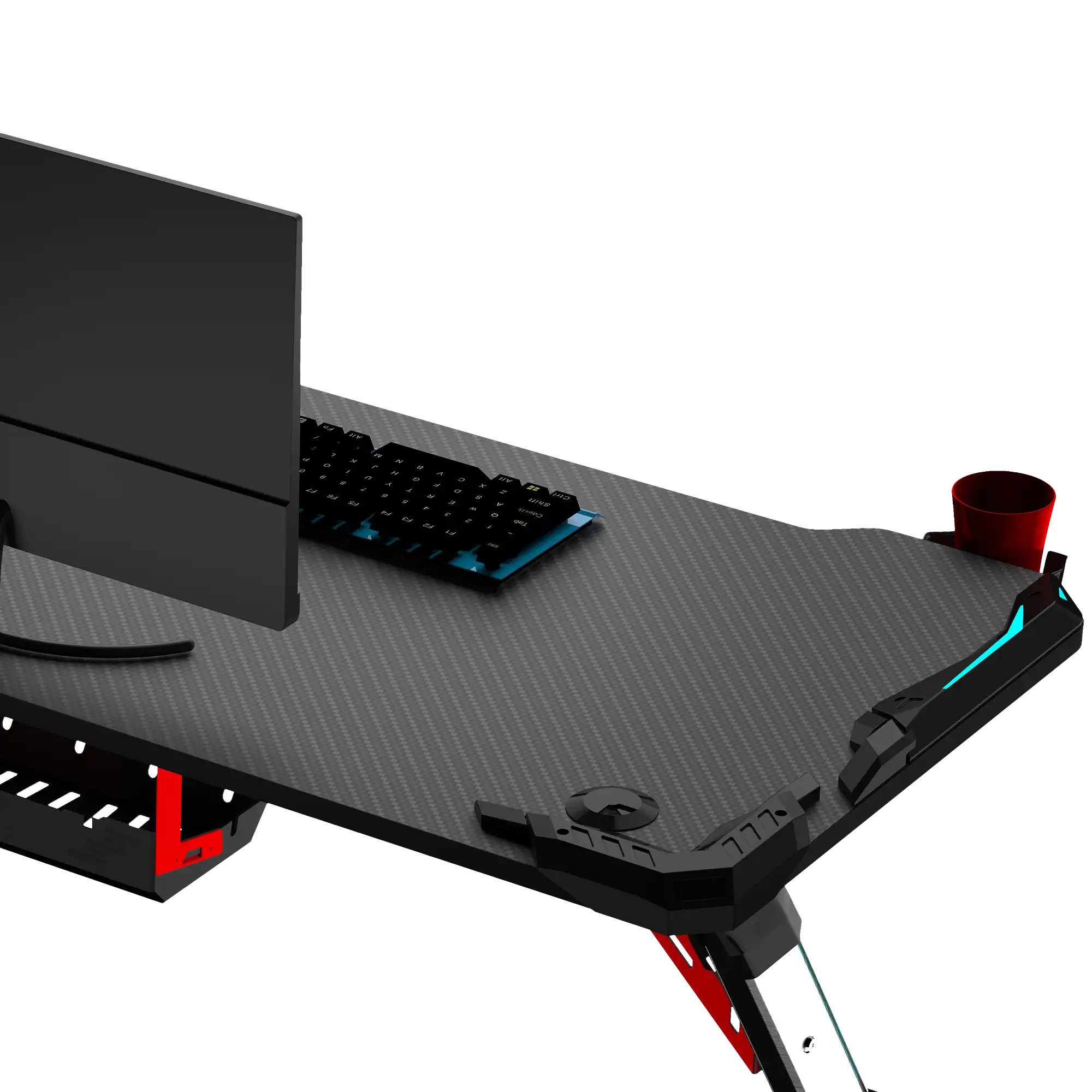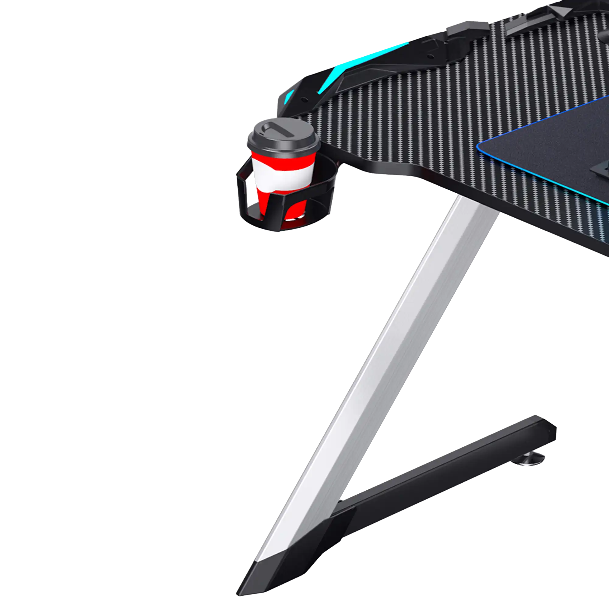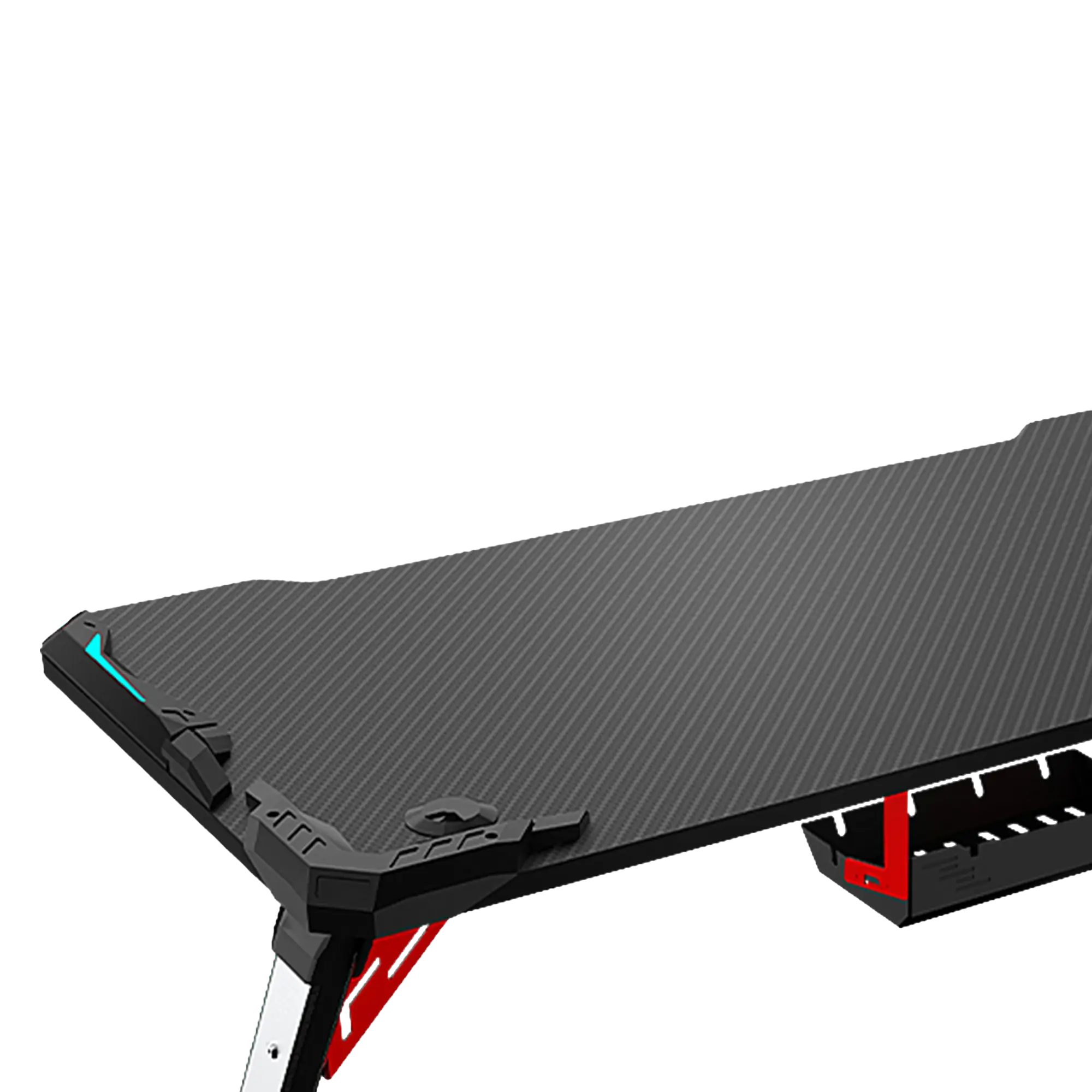 18mm Carbon Fiber Texture Tabletop, Aluminium Alloy Legs, 4-Area RGB Lights, Headset Hook, Cup Hook, Socket Storage Bin
